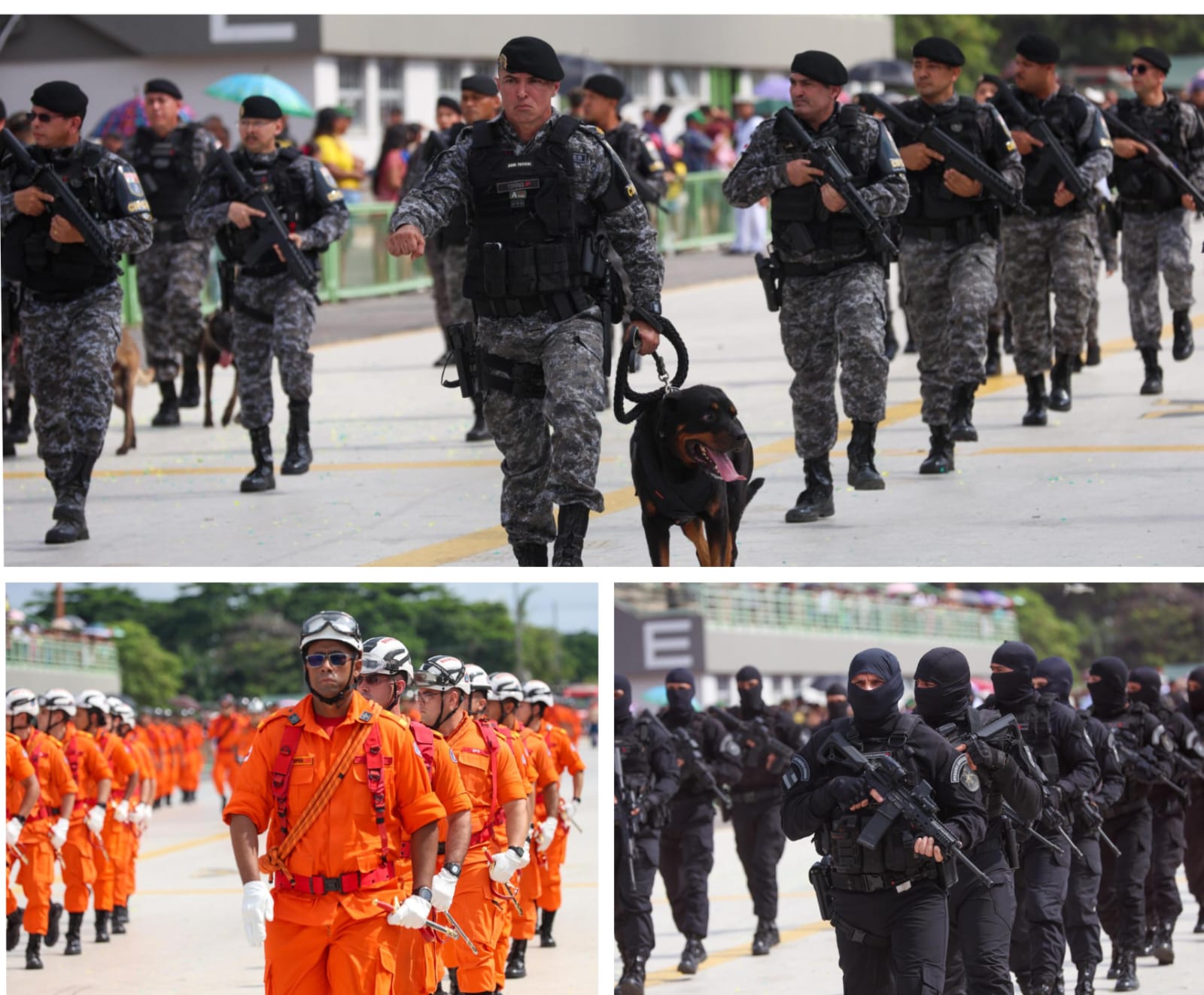 O tradicional desfile de 7 de setembro aconteceu na manhã deste domingo, 07/09, no Centro de Convenções de Manaus, o Sambódromo, com a presença das Forças de Segurança do Amazonas. Mais de 1.500 militares do Estado compareceram ao evento, que celebra a Independência do Brasil.