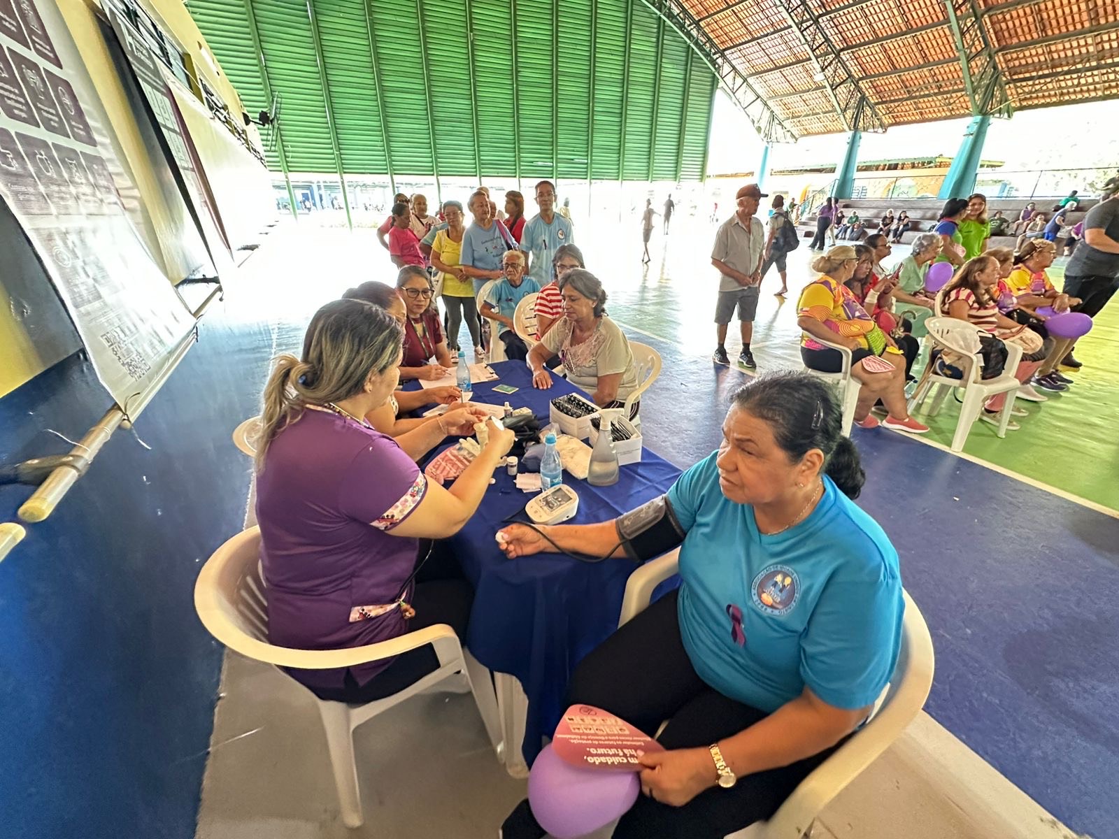 A programação incluiu caminhada, estandes de saúde, orientações educativas e apresentações culturais, além da oferta de serviços como aferição de pressão arterial, vacinação, atividades educativas sobre alimentação saudável e prevenção ao tabagismo e à dengue.